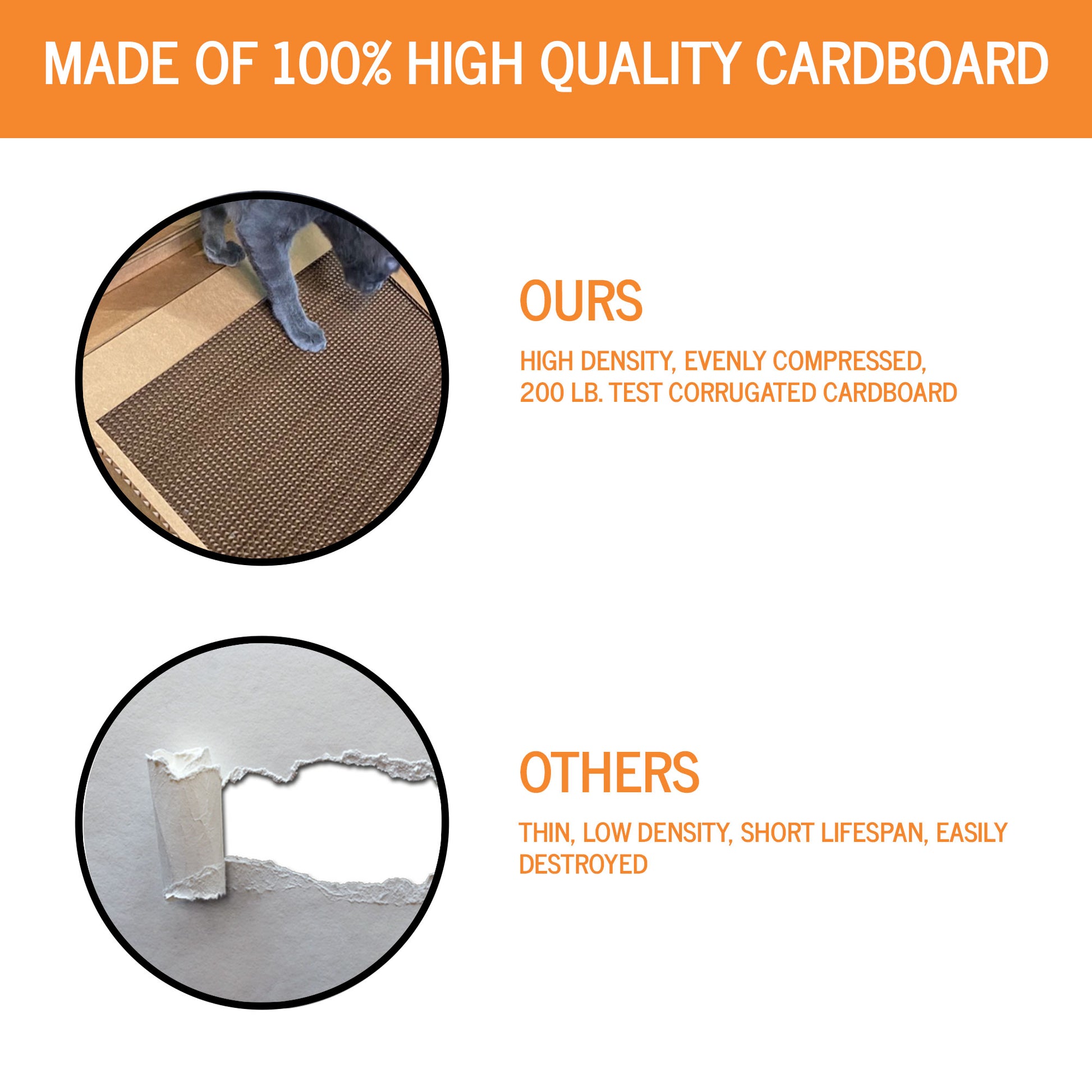 - Built to Last: Cardboard pieces are double-walled and dense enough to withstand the weight of all cats, big or small, and even a couple of cats at the same time.